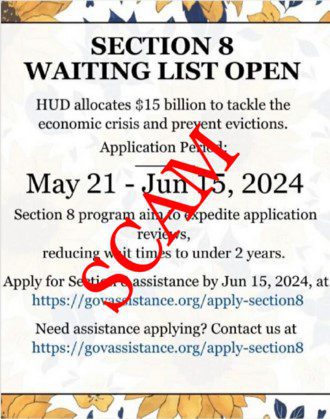 Online scammers are always looking for new targets. Recently they been very active on social media advertising assistance for services like applying for Section 8 funding and getting onto the Housing Choice Voucher (HCV) waitlist.